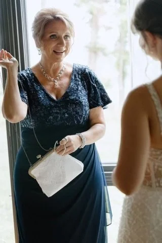 We will create a clutch purse out of the beautiful lace and embellishments of the vintage gown and add a charm with the original bride and the new bride. You have 3 different styles to choose from, Vintage, Victorian or Fold Over Clutch. Also included is a choice of a hand or shoulder length chain. We can also embellished with additional lace and beading. This clutch can be taken to every special event and will become a modern heirloom. This is one of our top seller and trending now design. Plan ahead so that this can be the most cherished gift for the mother of the bride or a shower gift for the bride to be.